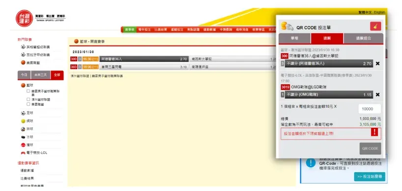 2.棒球派彩「投注結果/賽果」