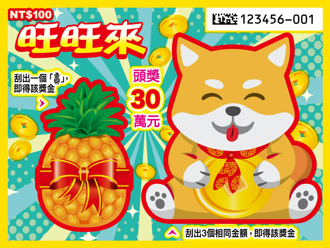 《旺旺來》頭獎30萬元,超過25萬個500元(含)以上的獎項。以下是旺旺來刮刮樂資訊: