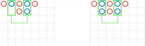 如換列後,再次連續出現相同結果,因為第6行被佔據,則在第5行後向右轉向。轉向只會發生一次,不會發生轉向後再繼續向下的情況。
